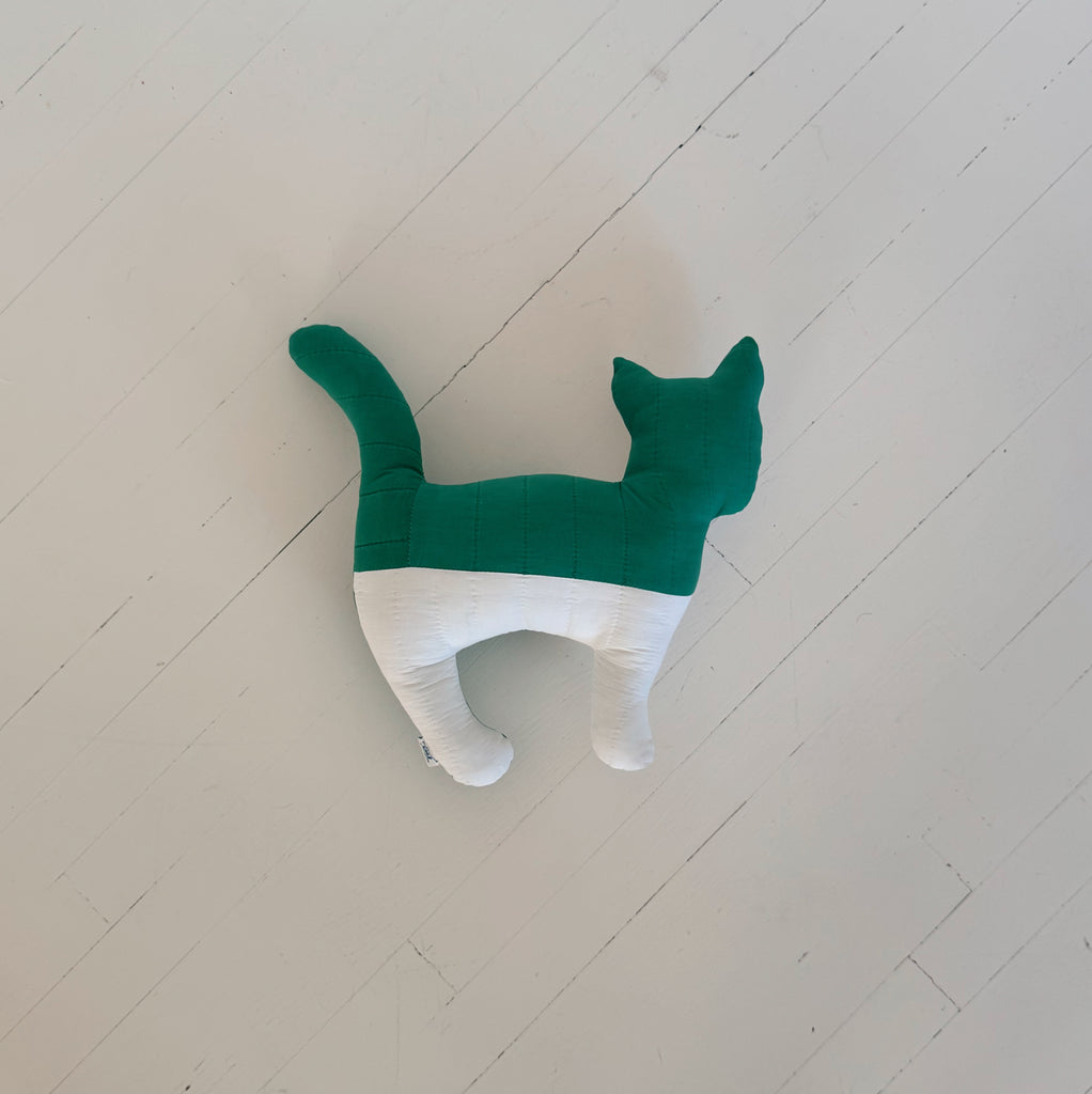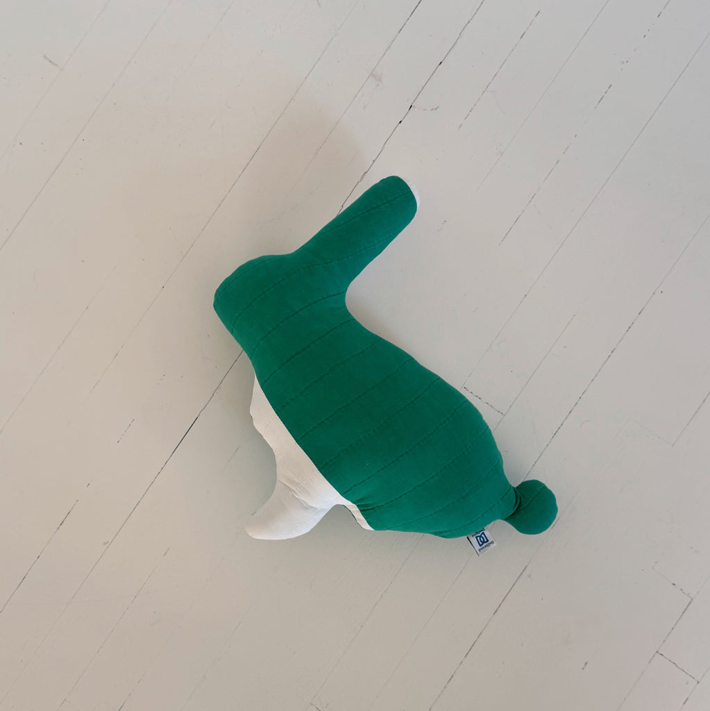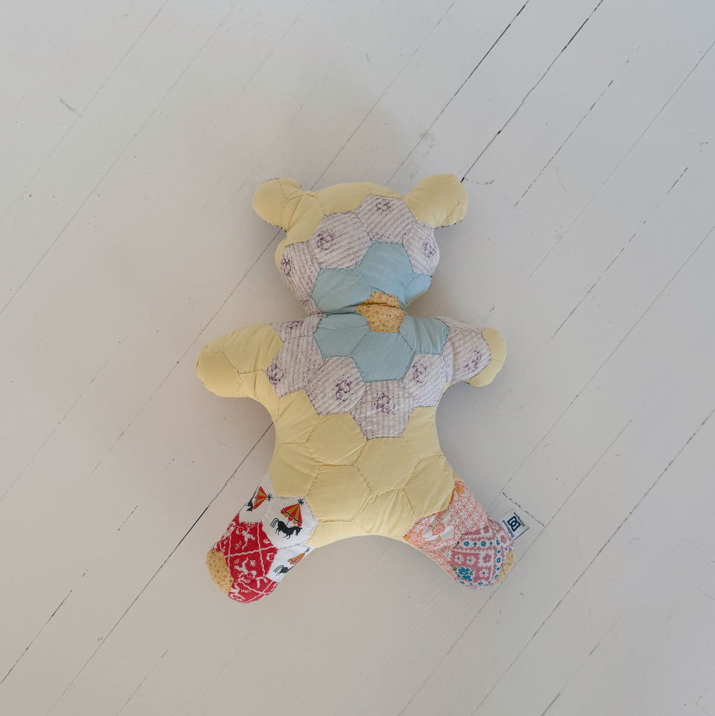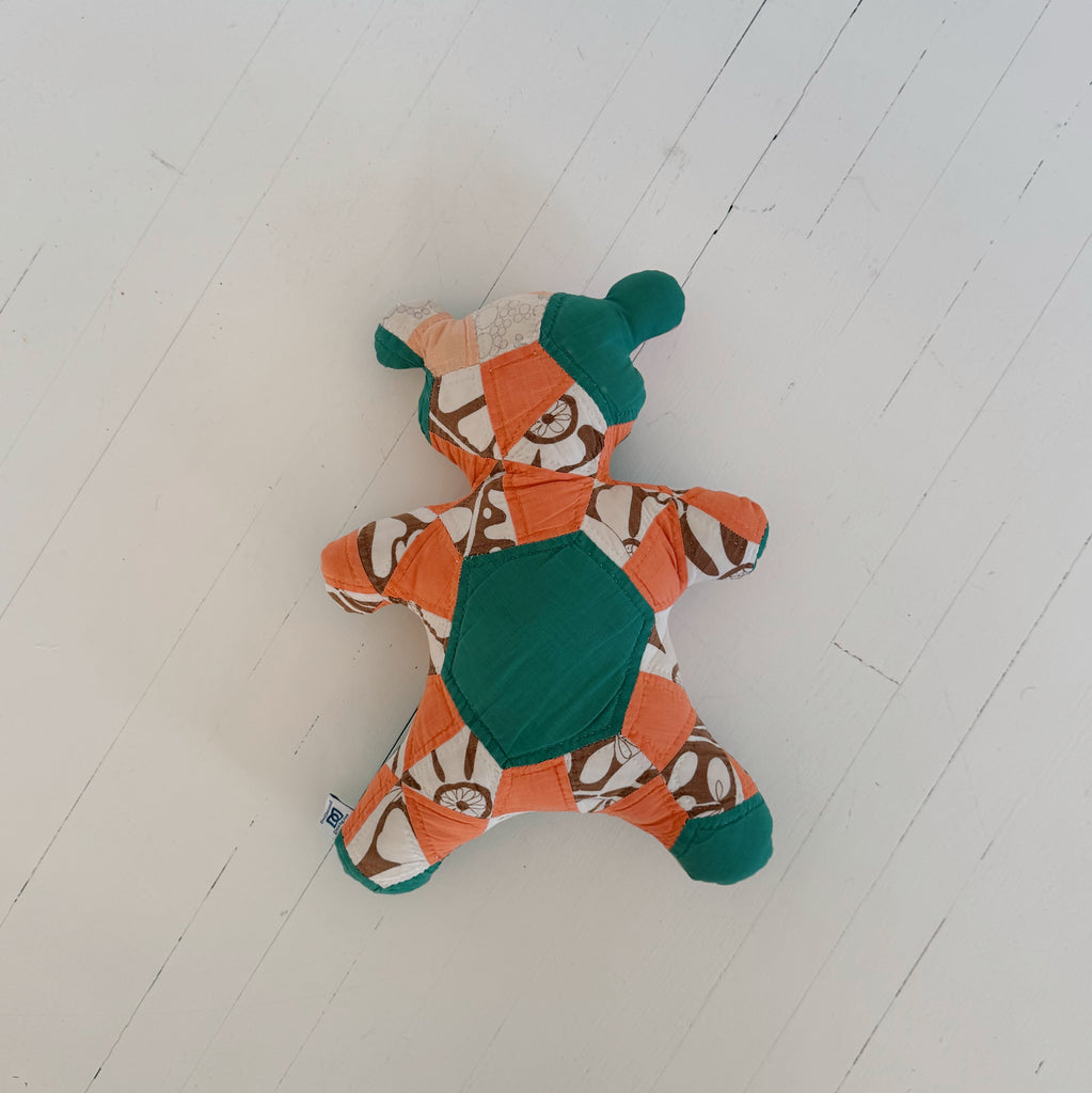 Snuggle up with an adorable vintage quilted animal pillow. Made from vintage quilts, these unique and charming pillows are sure to bring extra coziness to your home. Perfect for cuddling and adding a playful touch to any space.