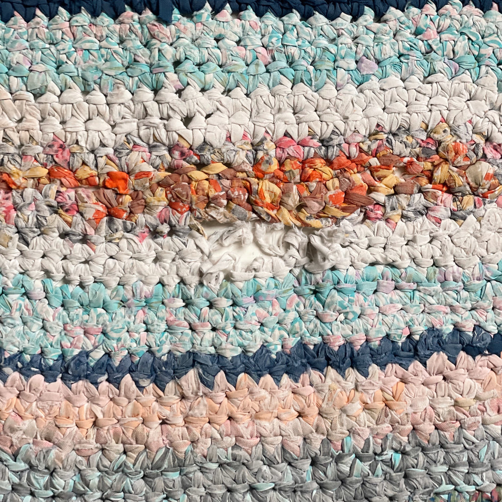 There’s a sense of home in rugs like this. The rhythm of braiding, the patience of sewing strips together, the quiet purpose of using every bit of cloth. It feels like grandma’s kitchen floor, warm morning light, the smell of biscuits, and a life stitched slowly and thoughtfully.