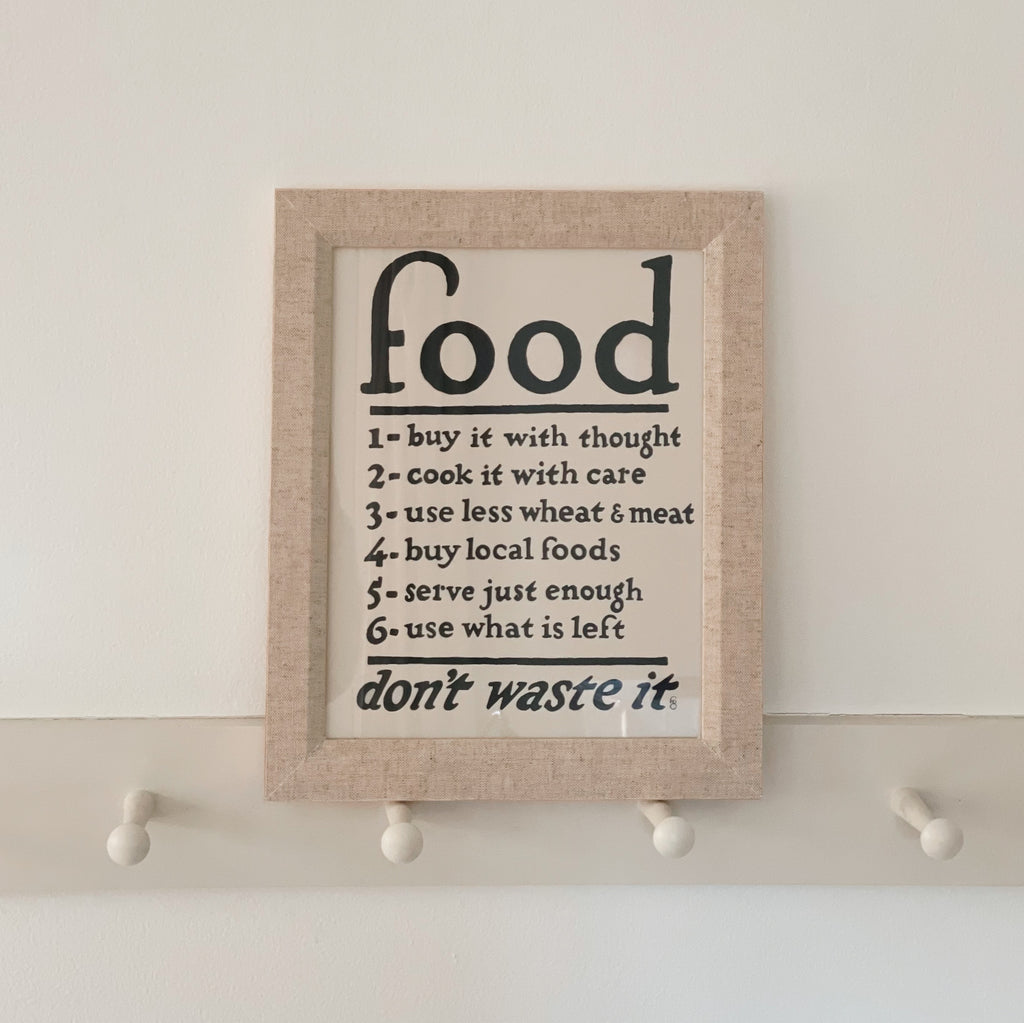 The perfect poster for the kitchen or dining room. This poster is a Homesong Market design based on the WWI poster encouraging Americans to conserve food during the war. It lists straight forward guidelines that will encourage today's families to reduce waste in our own homes.