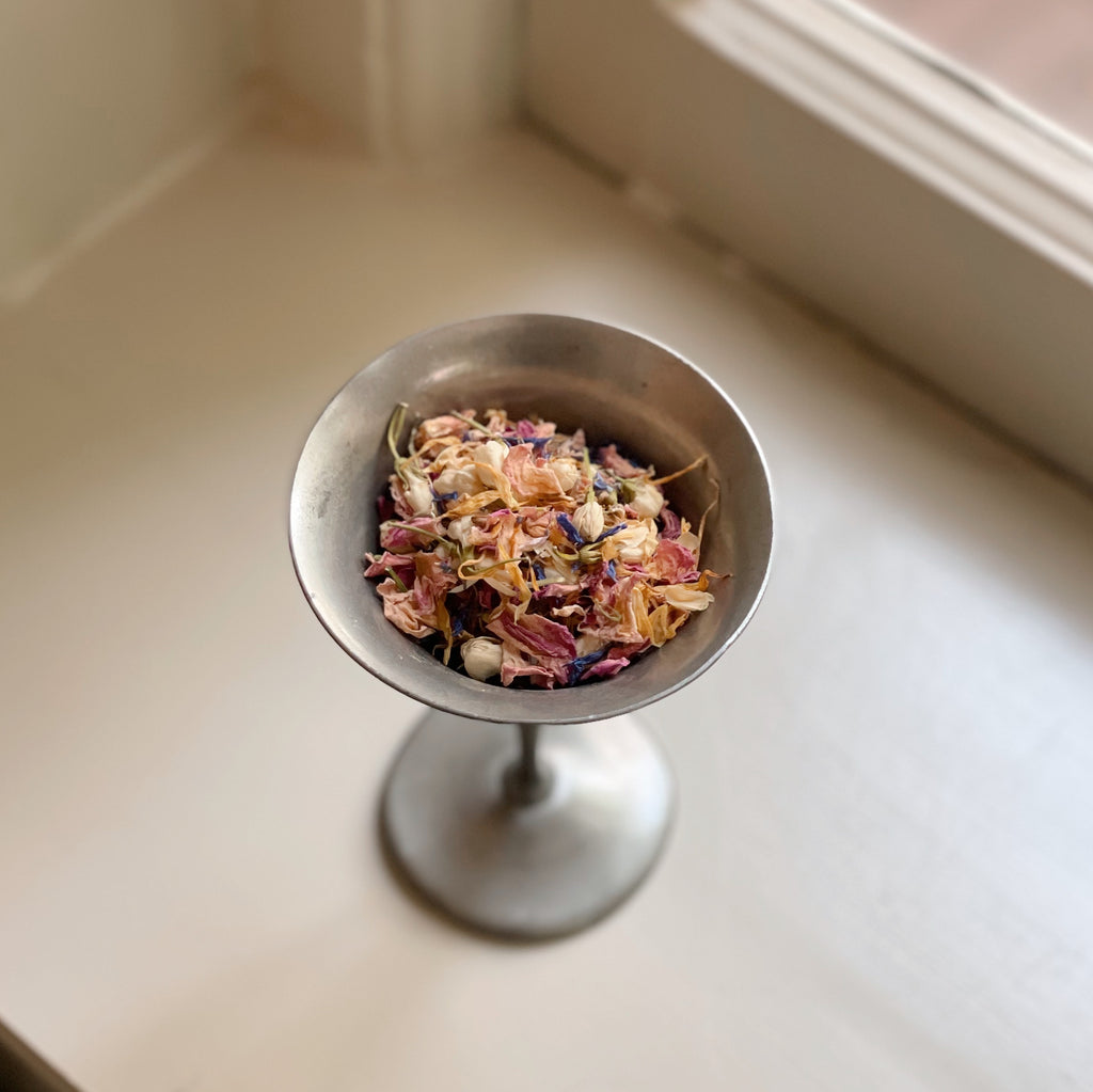 Edible flowers petals packed using only organic herbs in an 8 ounce glass jar. Enjoy nature's sprinkles on salads, cakes, cocktails, soups, and ice cream – wherever your heart desires!