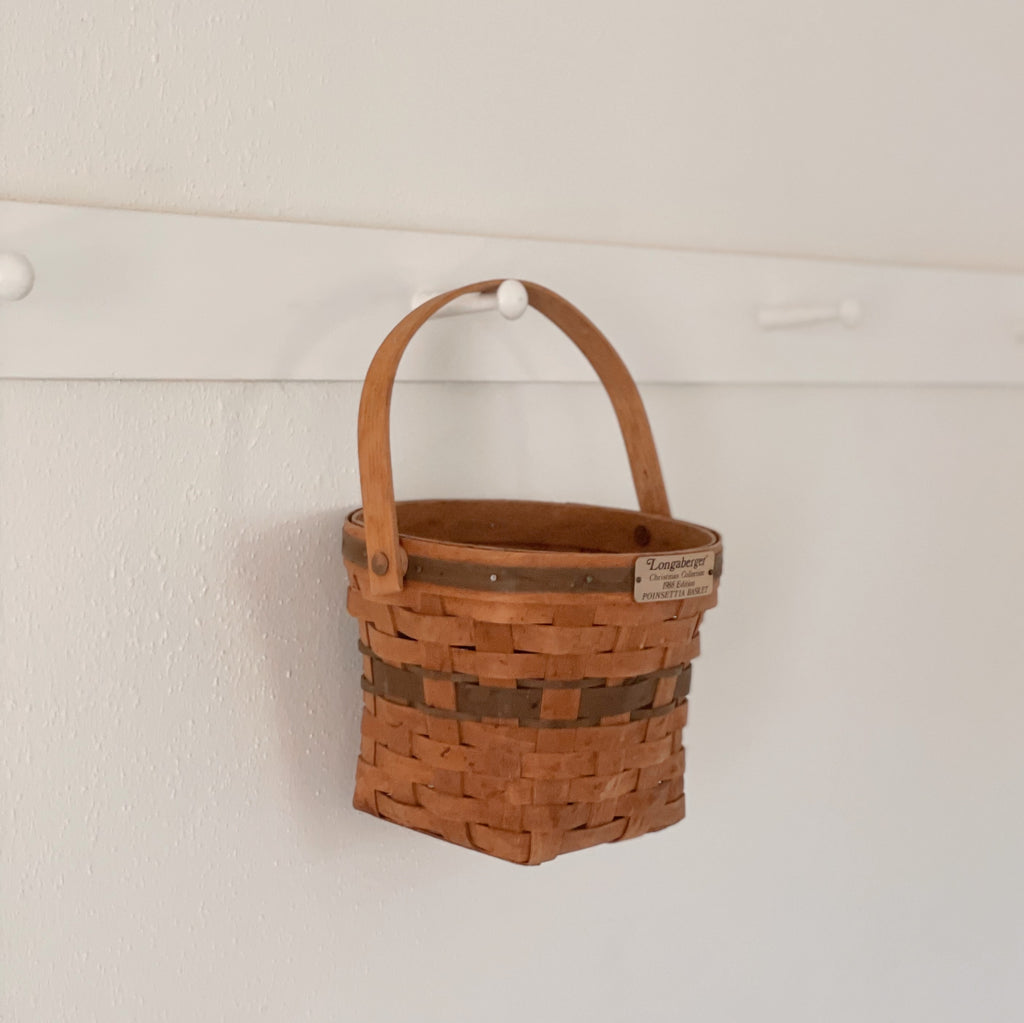 A classic Longaberger piece that feels right at home in the glow of the season. Handwoven in beautiful splints with a festive band of sage, this Holiday Poinsettia Basket brings a touch of nostalgia to any corner of the house. Its sturdy swing handle makes it easy to tote from room to room, whether you’re gathering ornaments, corralling holiday cards, or filling it with small wrapped gifts beside the tree.