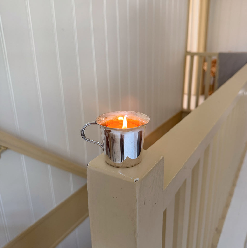 A beautiful vintage silver-plated baby cup, a gorgeous heirloom piece. Add a beeswax votive for a lovely glow!