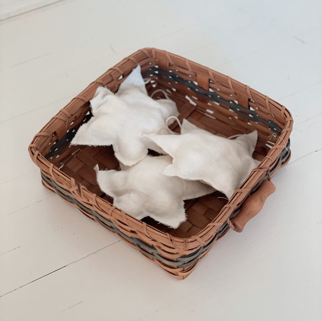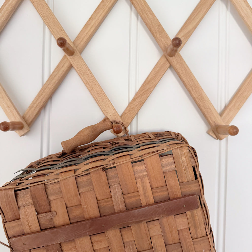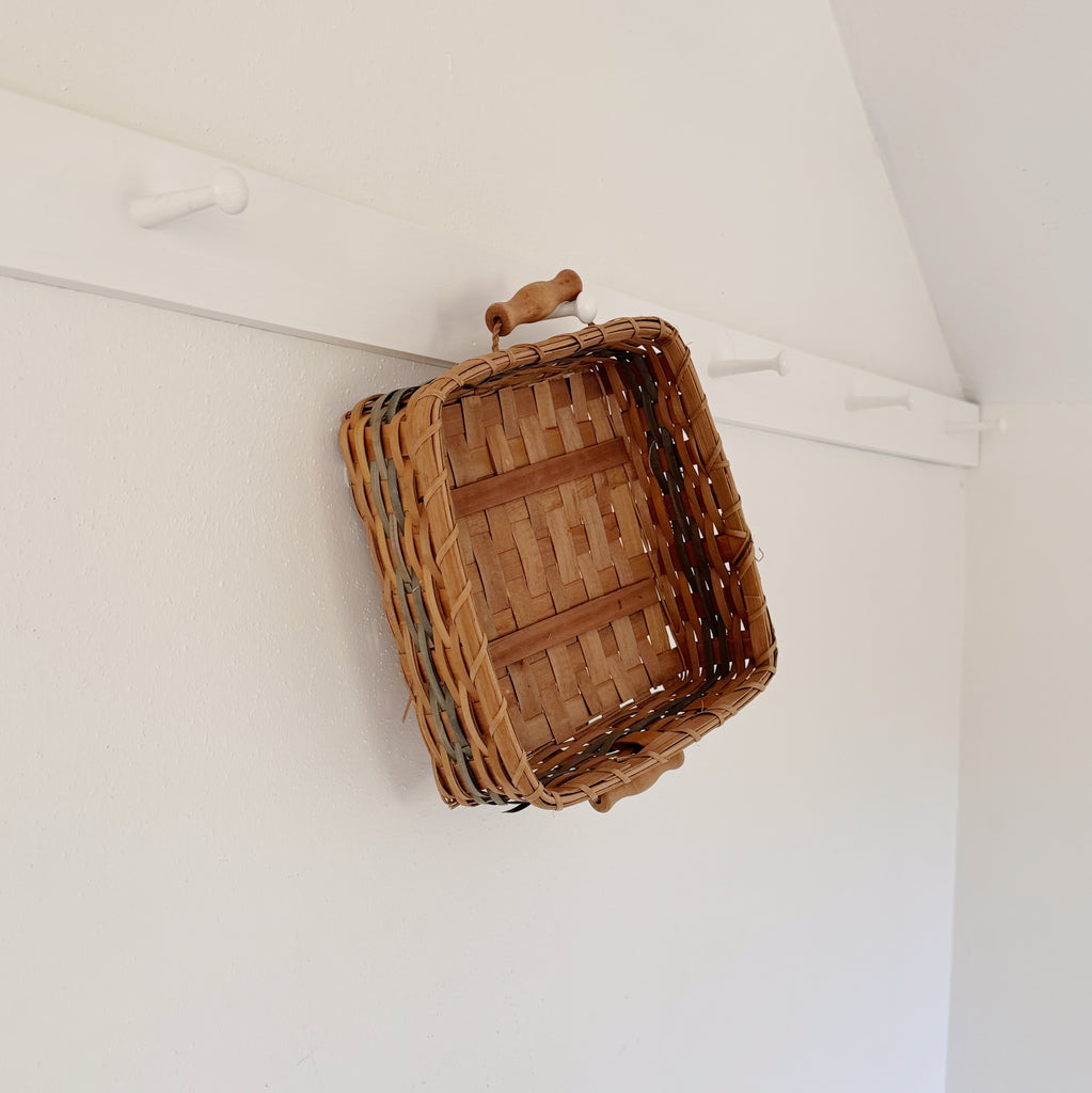 Add in a touch of handmade charm with this honey hued handled woven basket. A perfect piece for catching mail, storing napkins, holding dryer balls, or corralling books. We love when vintage pieces find a new home, and a second life of usefulness!
