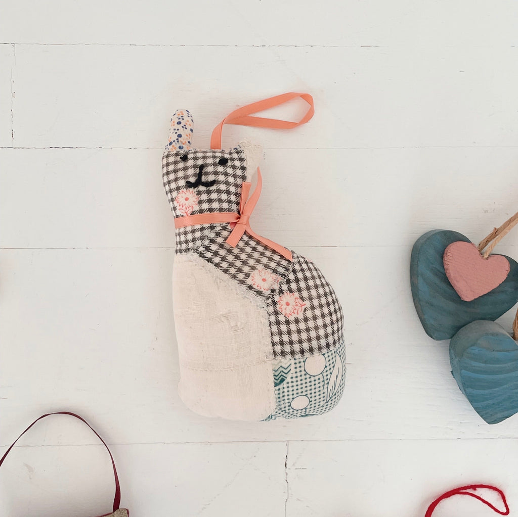 A gathered collection of handmade holiday charm — each tiny piece stitched, knitted, or cut with love. From cozy mittens and patchwork stockings to little hearts, stars, and a darling quilted cat and stuffed whale, these ornaments feel like stepping into a storybook Christmas.