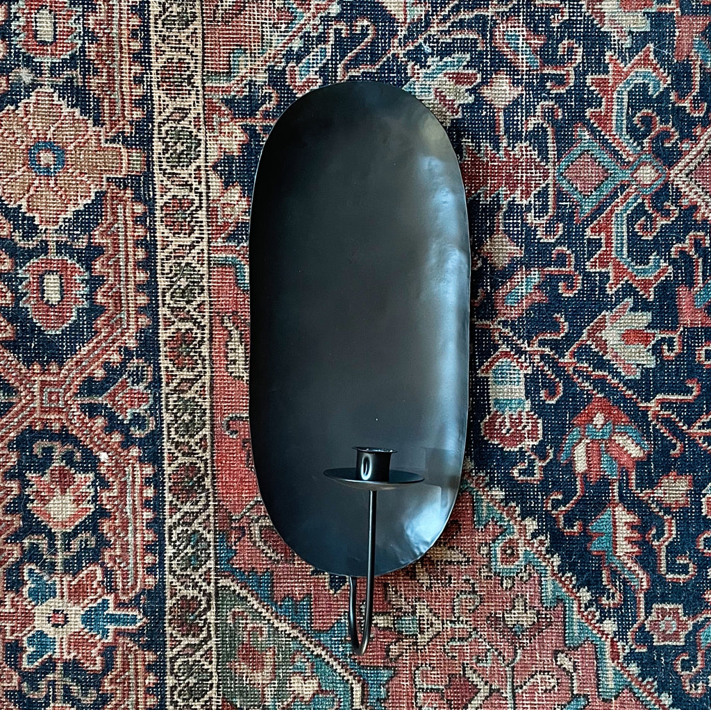 A beautifully simple, colonial-style iron candle sconce that is timeless, moody, and full of quiet old-world charm. With its elongated back plate, curved arm, and petite drip tray, this piece feels at home in historic interiors, cozy cottages, and homes that lean into warm, lived-in tradition.