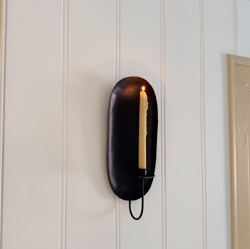 The finish is a deep matte black with handmade character, catching candlelight in the loveliest way. Perfect for adding ambient glow to hallways, dining rooms, or beside a fireplace, especially during autumn and winter when flickering taper light feels like a return to simpler, slower evenings.