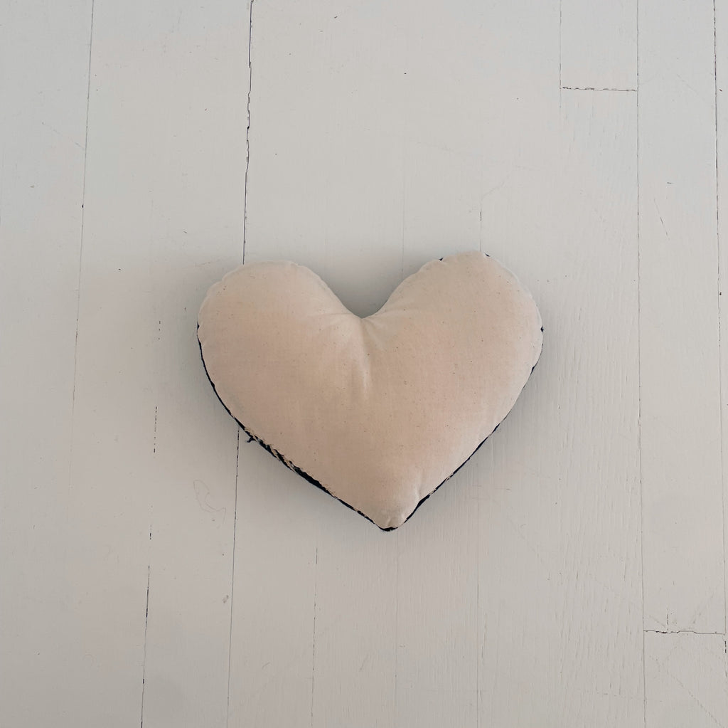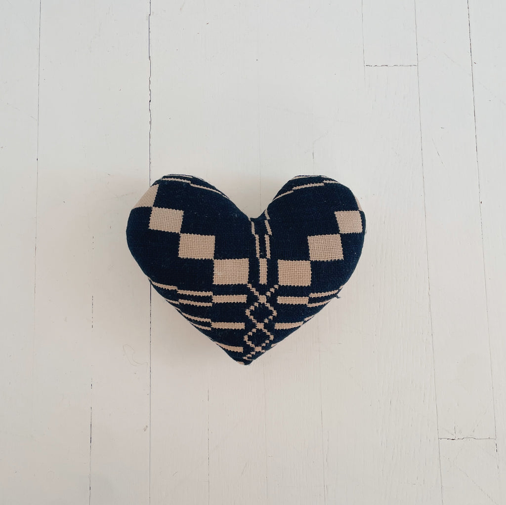 A cozy little accent with big charm. This stuffed heart pillow is crafted from a striking indigo-and-cream woven textile, bringing a modern folk sensibility to nurseries, reading nooks, or layered bedding. The geometric jacquard pattern feels both warm and timeless, a sweet mix of Americana and heirloom quilt inspiration.