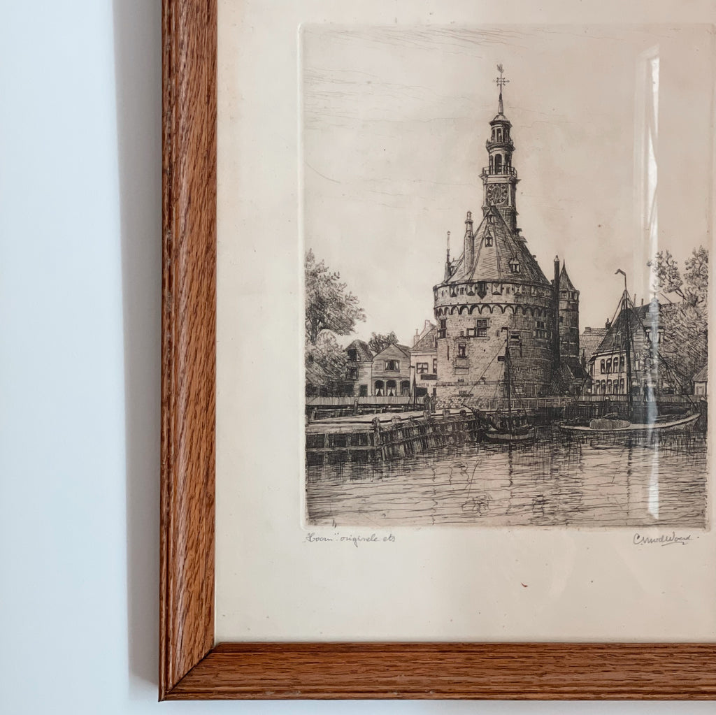 This stunning original work of art is one of our favorite pieces in this collection. Hand drawn in pen and ink, and signed on the mat by the artist, this gorgeous piece has such soul and warmth apparent with a glance. Surrounded by a warmly hued wooden frame, this beautiful piece is ready for its new home, to be appreciated anew for years to come.