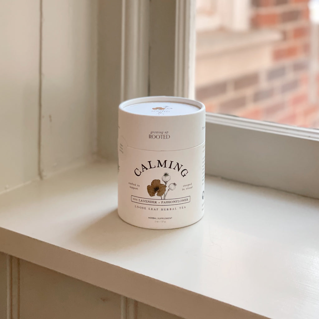 Cozy up with our new loose leaf herbal teas. Non-caffeinated herbal blends formulated to support and soothe. Contains two ounces of tea which allows for 18 servings, in a compostable canister. Made in USA.